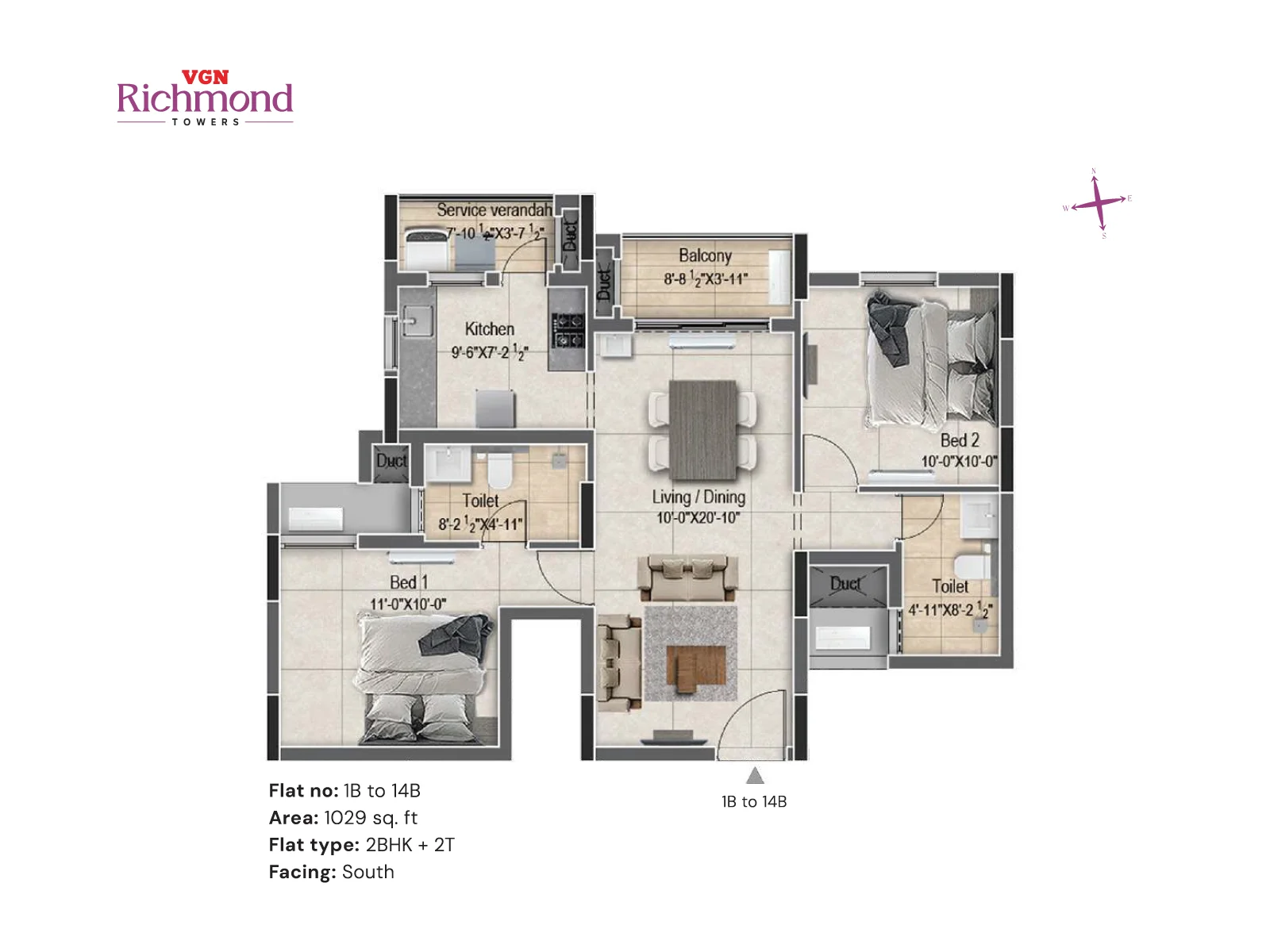 VGN Richmond Towers is strategically located in the heart of Guindy, just 1 km from Kathipara Junction, opposite Hotel Hilton, and Ekkatuthangal Metro Station is within walking distance. Out of 10.46 acres of prime land in the heart of Guindy, VGN Richmond Towers is offering 14 floors of luxurious 2 & 3 BHK residences with sophistication and convenience.